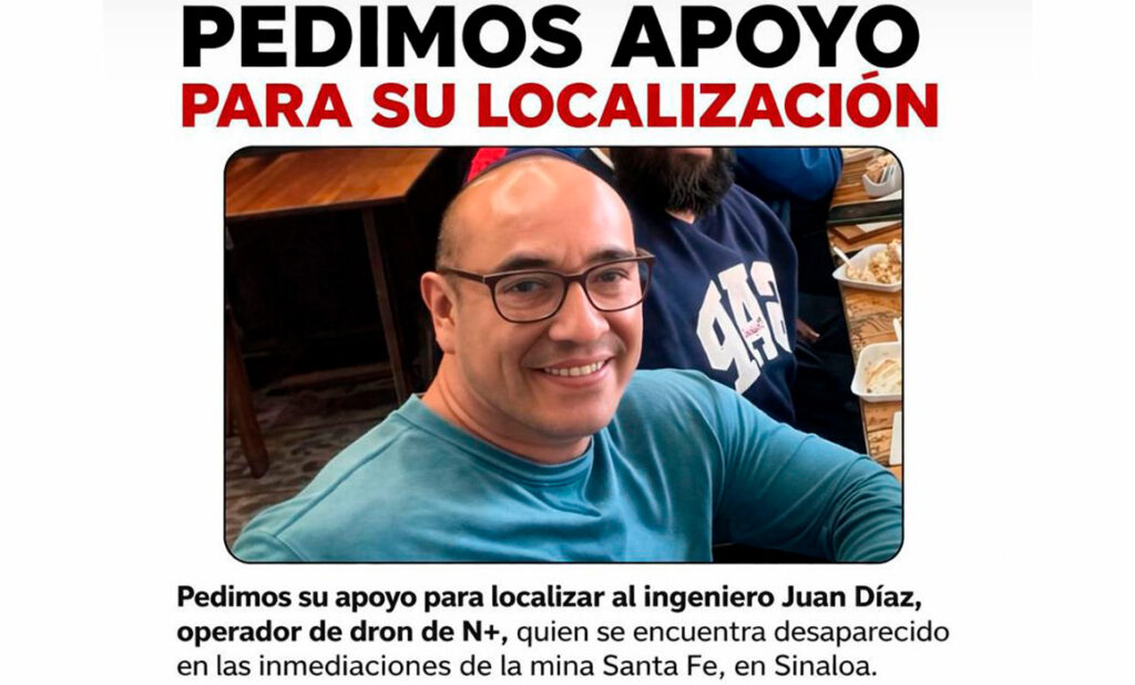 De manera paralela, se desplegó un operativo conjunto por aire y tierra para localizar a un ingeniero que forma parte del equipo de N+ y que cubría el rescate de los mineros. El profesional identificado es Juan Díaz, quien se encarga de operar el dron con el que realizaban tomas aéreas en el lugar.