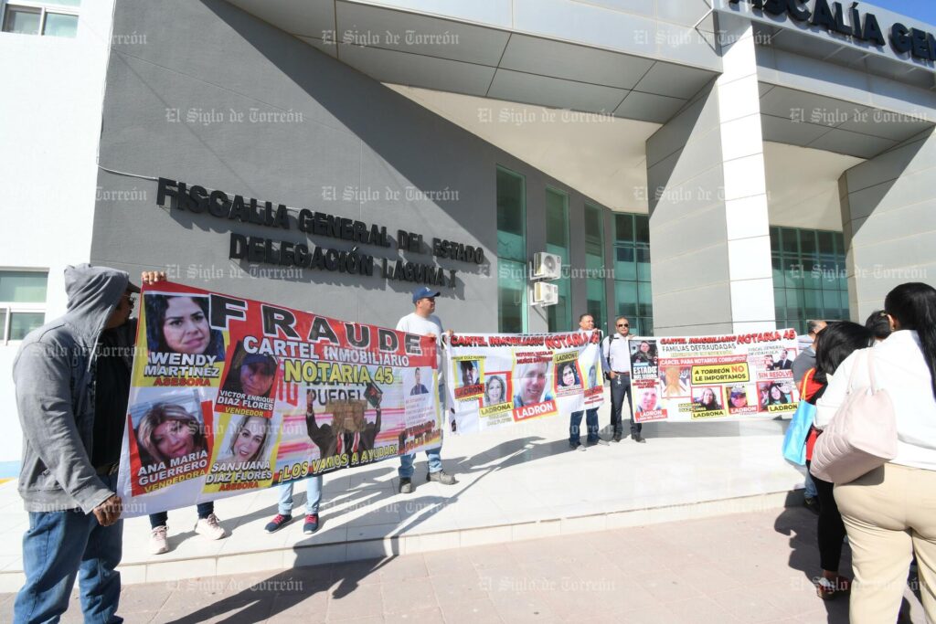 Torreón, 27 de marzo de 2026.- Víctimas de un presunto fraude inmobiliario se manifestaron este jueves en las inmediaciones de la Delegación Regional I de la Fiscalía General del Estado (FGE) en Torreón, donde bloquearon parcialmente la circulación para exigir celeridad y justicia. El grupo, que inicialmente agrupaba a 27 personas, acusa a las autoridades de tortuguismo en la integración de carpetas de investigación por un daño patrimonial reportado cercano a los 19 millones de pesos.