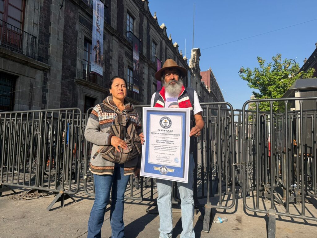 La réplica del certificado Guinness está fechada el 16 de marzo de 2026 y se inspira en un diseño similar al que recientemente recibió el gobierno mexicano por realizar la clase de fútbol más grande del mundo. Los familiares utilizaron este formato para llamar la atención sobre la crisis de desapariciones.